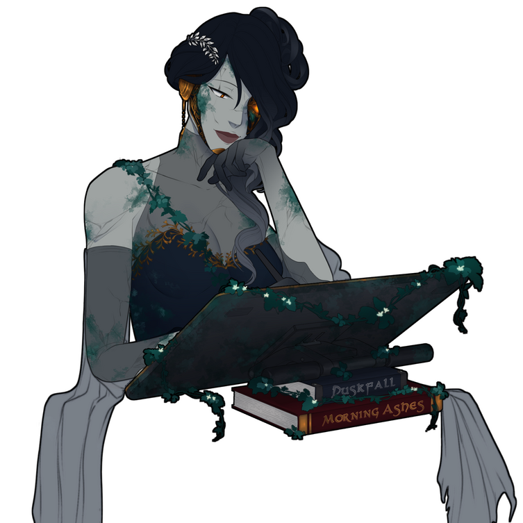 The last remnant of a forgotten goddess, Roman keeps vigil in the quiet of the Soulhollow: a realm where fading memories and last lights settle like snow. It was Roman that first drew the other Solstice Court together and called upon their powers to protect the realms. As the Warden of the Hollow and Voice of Winter, she guides lost souls, shelters wandering spirits, and tends to the held breath between worlds. Through her streams, Roman reaches out beyond the Hollow's borders, letting her soulseekers find a place of rest, warmth, and small moments of joy by her side